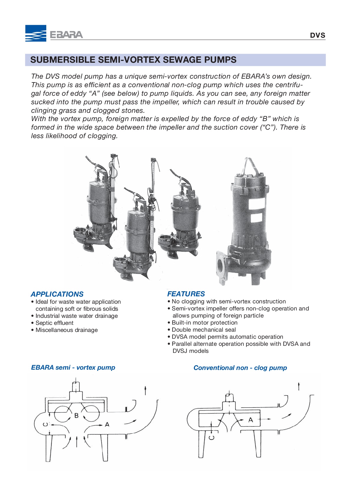 EBARA Submersible semi vortex Dvs Series